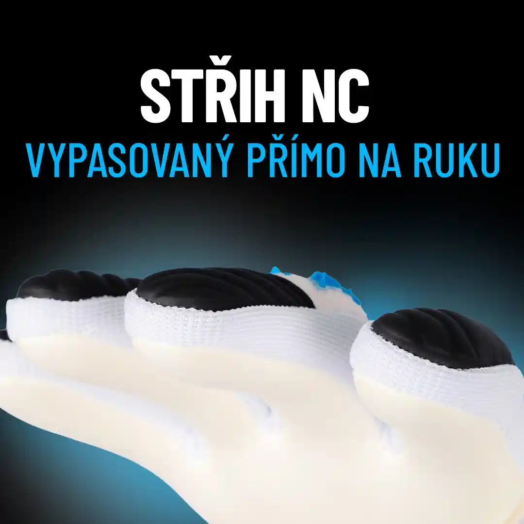 Tohle nejsou nějaké necitlivé plácačky. Naopak – díky NC střihu rukavice těsně obepínají prsty a garantují perfektní kontakt s míčem.