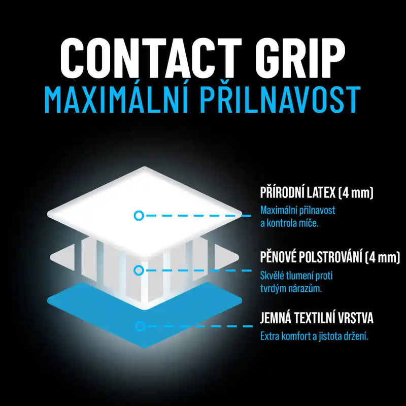 Sucho, nebo mokro? Na počasí nesejde, když máte na dlaních 4 mm profi pěny Contact Grip. Je dokonce tak odolná, že se mnozí nezdráhají vzít tyhle rukavice ani na umělku – přestože k tomu nejsou určené. Každopádně bez správné péče toho nikdy moc nechytíte.