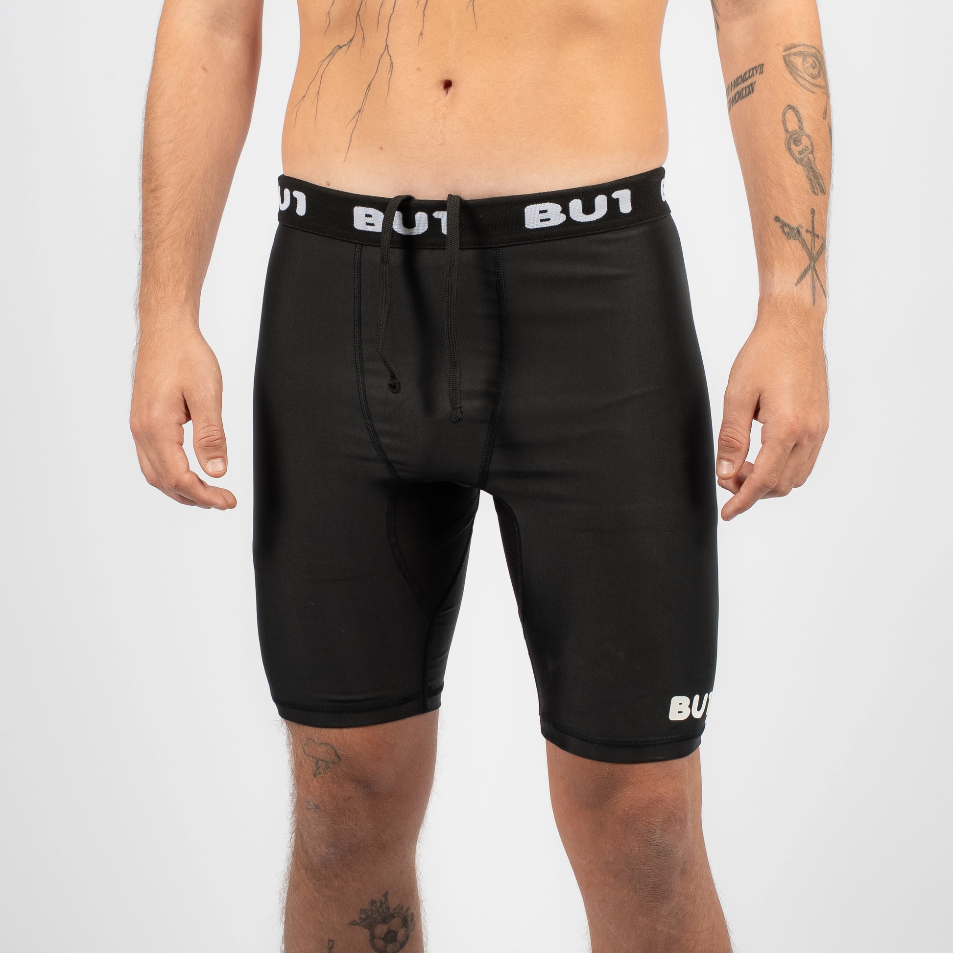 Ideální na trénink pod trenýrky i samostatně. Bílé logo BU1. Elastický pas, který je možné nastavit pomocí šňůrky.